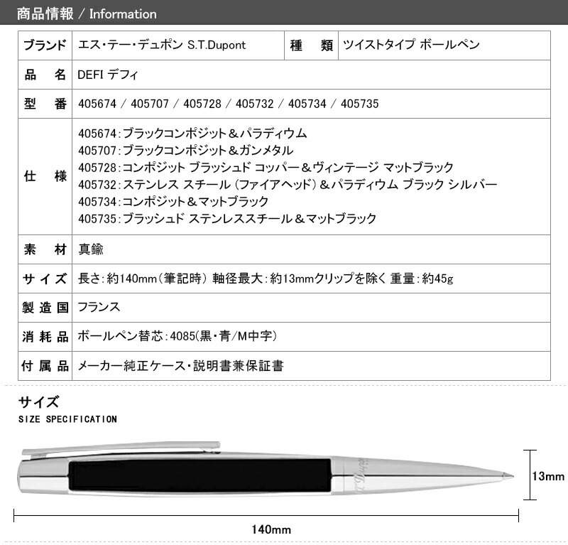 エス・テー・デュポン S.T.Dupont デフィ DEFI ボールペン 405674 / 405707 / 405728 / 405732 / 405734 / 405735 高級筆記具 男性 女性 おしゃれ 高級ボールペン ギフト プレゼント お祝い 記念品