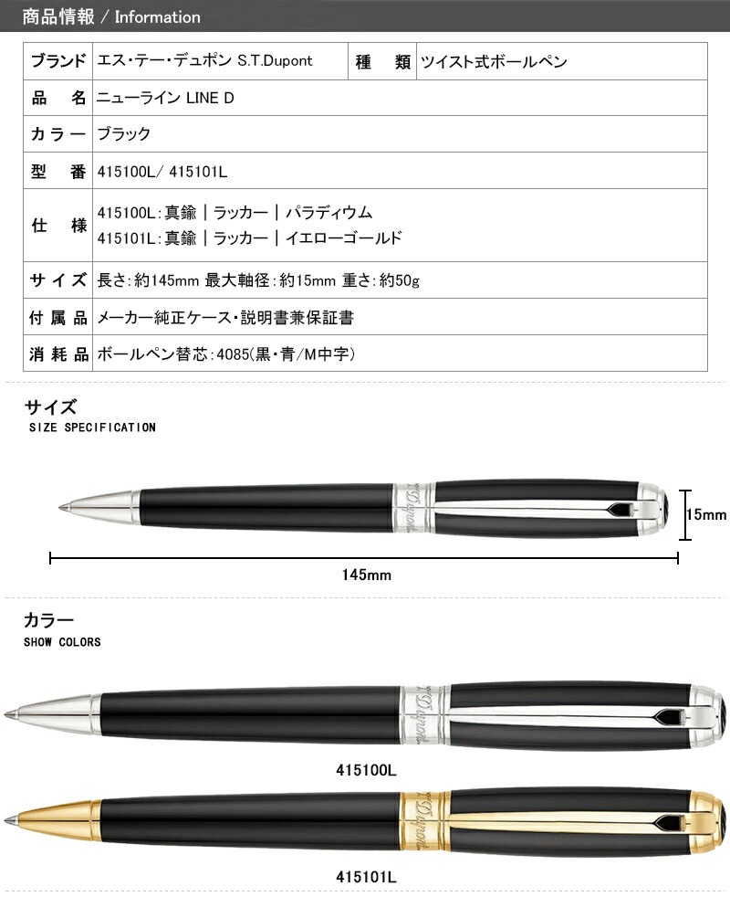 エス・テー・デュポン S.T.Dupont ニューライン LINE D ブラックナチュラル ラッカー/パラディウム 415100Lラッカー/イエロー ゴールド 415101L 高級筆記具 男性 女性 おしゃれ 高級ボールペン ギフト プレゼント お祝い 記念品