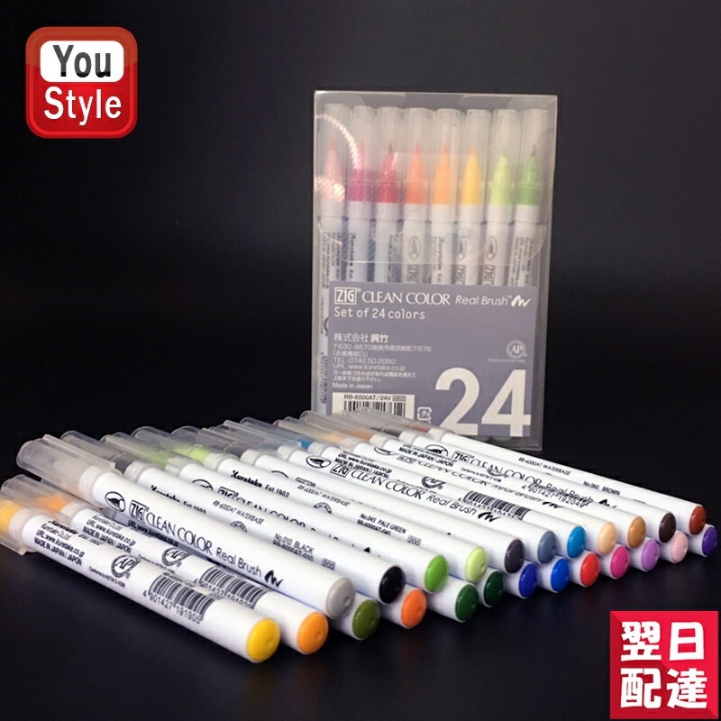 呉竹 KURETAKE カラー筆ペン ZIG クリーンカラーリアルブラッシュ 水性染料インキ 24本入り 24色セットRB6000AT-24V