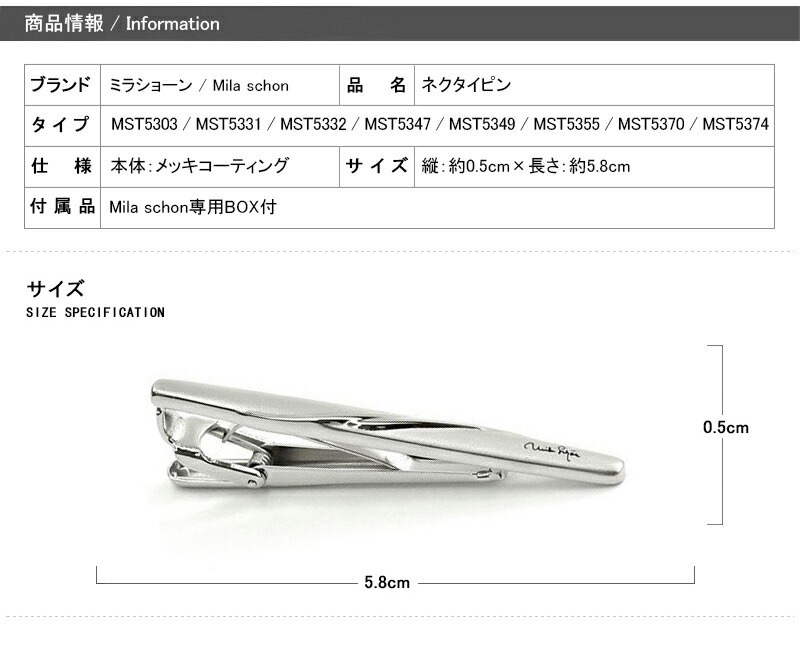 名入れ プレゼント ミラショーン Mila schon アクセサリー ネクタイピン タイバー MST53 全8種類 名前入り 名入り ギフト 誕生日 記念日 祝い おしゃれ